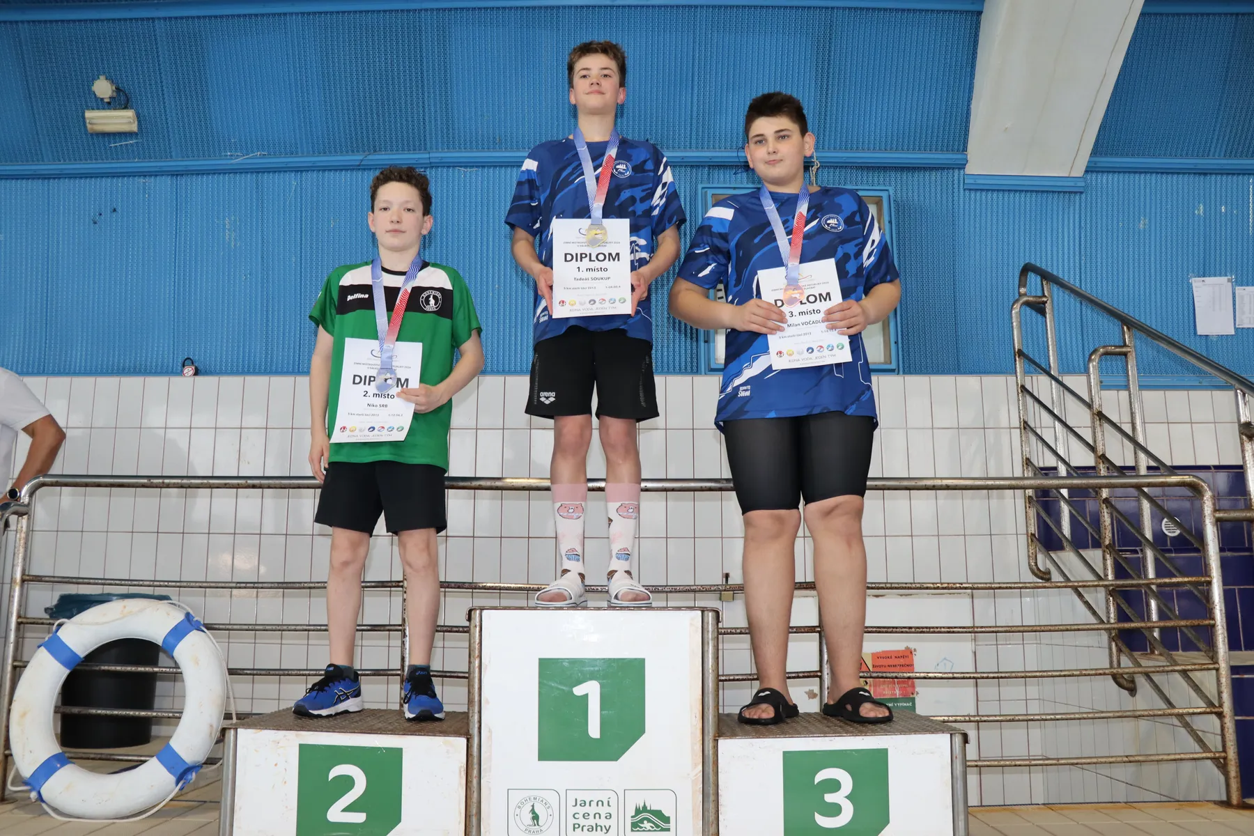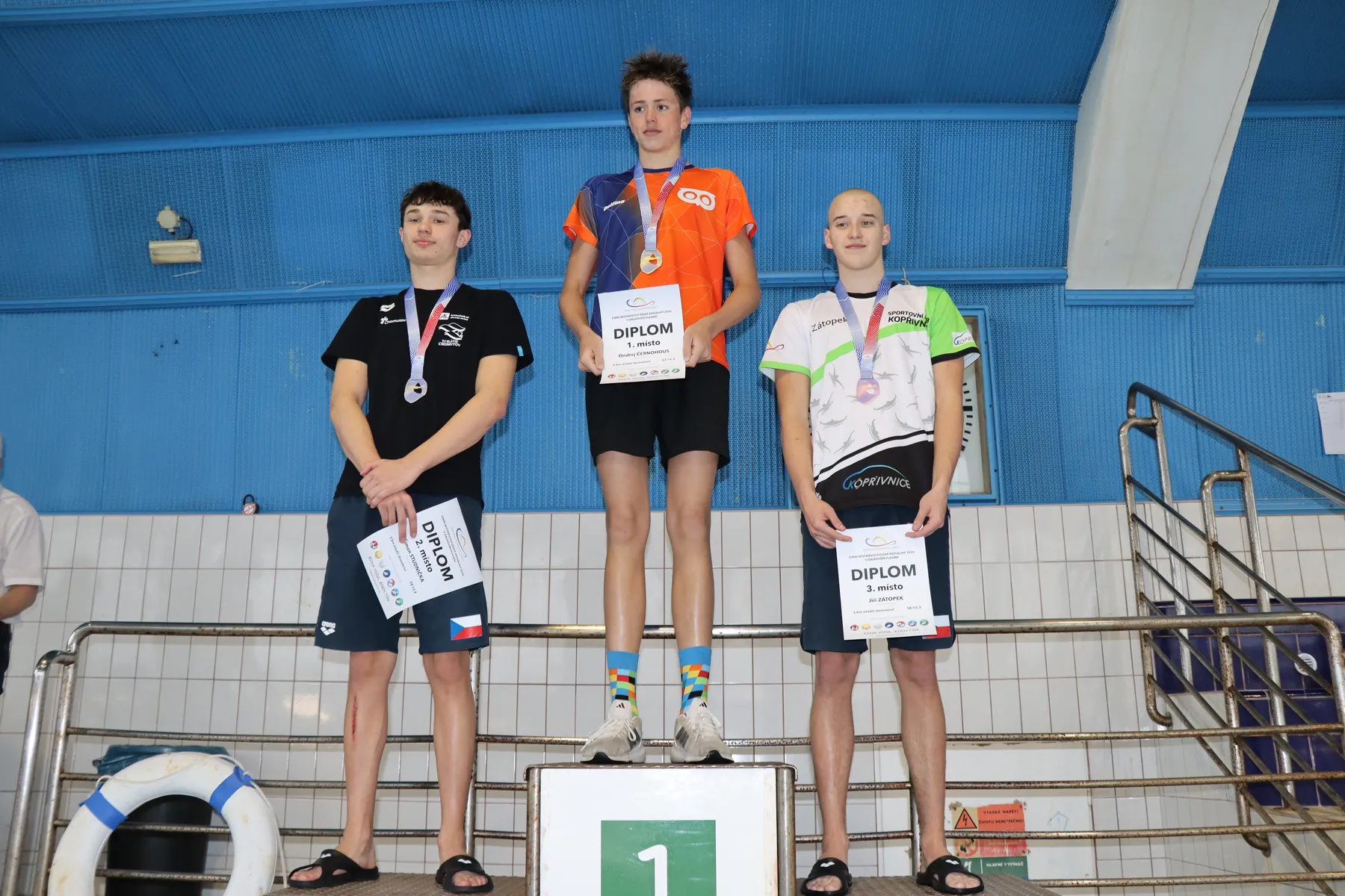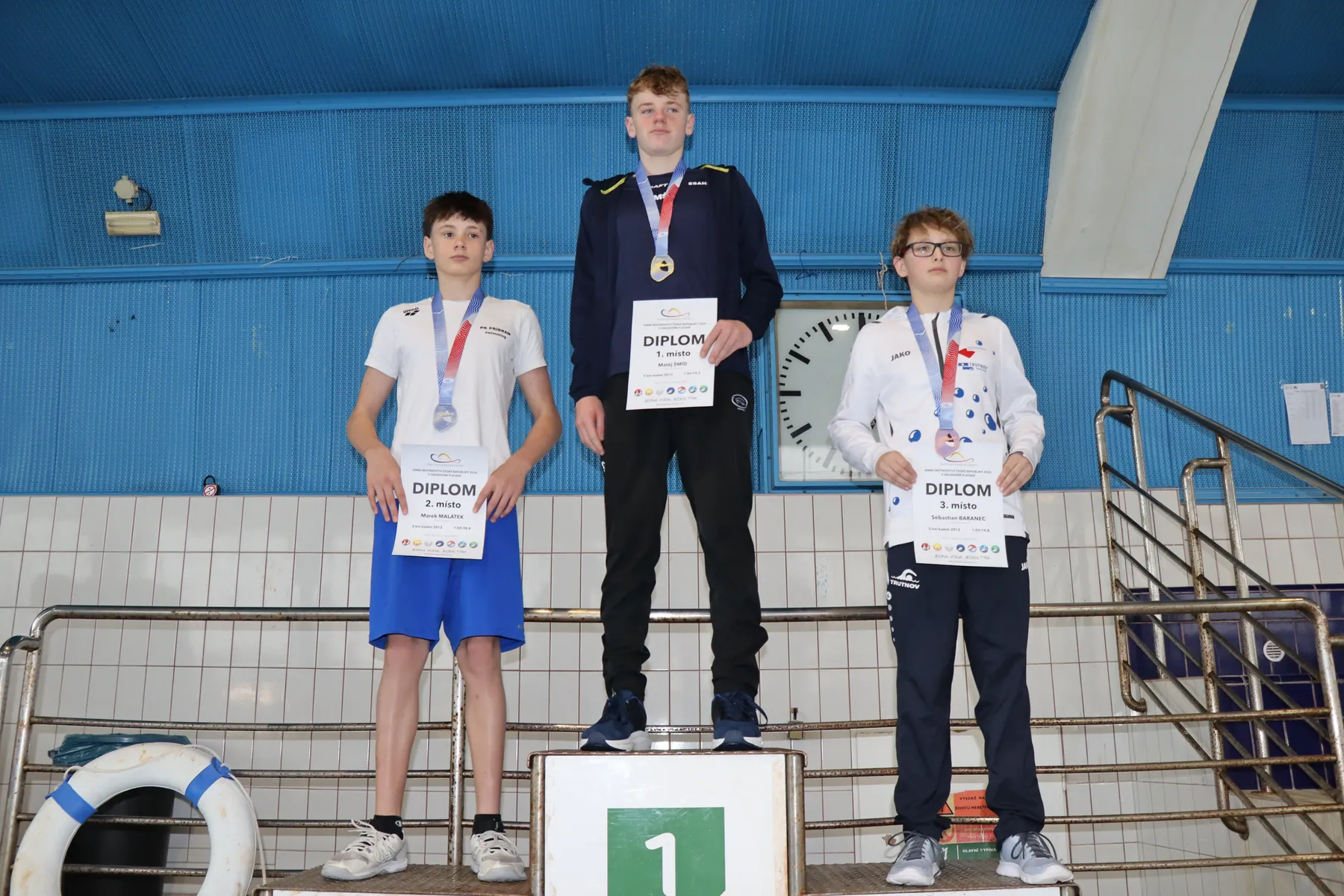 Velký příběh zažili přítomní diváci, trenéři a plavci i v závěrečné rozplavbě mužů. Na jedné dráze se společně sešla dvojice David Ludvík a Petr Morávek, kteří všem přítomným připravili opravdu zajímavý zážitek. Společně, prakticky celou dobu bok po boku, totiž absolvovali skoro celých pět kilometrů. Vteřinové pokusy o únik jednoho ten druhý vždy pečlivě pokryl, a tak se muselo rozhodnout až v závěrečných stovkách metrů. V těch měl přeci jen více sil i zkušeností David Ludvík (Kometa Brno), který si ve výborném čase 55:00.1 dohmátl pro mistrovský titul a ostrý limit na Mistrovství Evropy. Devět vteřin za ním pro stříbro, titul mezi starším dorostem a také ostrý limit na ME finišoval Petr Morávek (USK Praha), bronz a měkčí limit na ME pro sebe uzmul Matěj Kozubek (Kometa Brno). Stupně staršího dorostu doplnili Jakub Novák (USK Praha) a Matyáš Kolář (Jihlavský PK). Mezi mladším dorostem zvítězil Ondřej Černohous (USK Praha), stříbro bral Šimon Studnička (Slávie Chomutov), bronz Jiří Zátopek (Kopřivnice).
